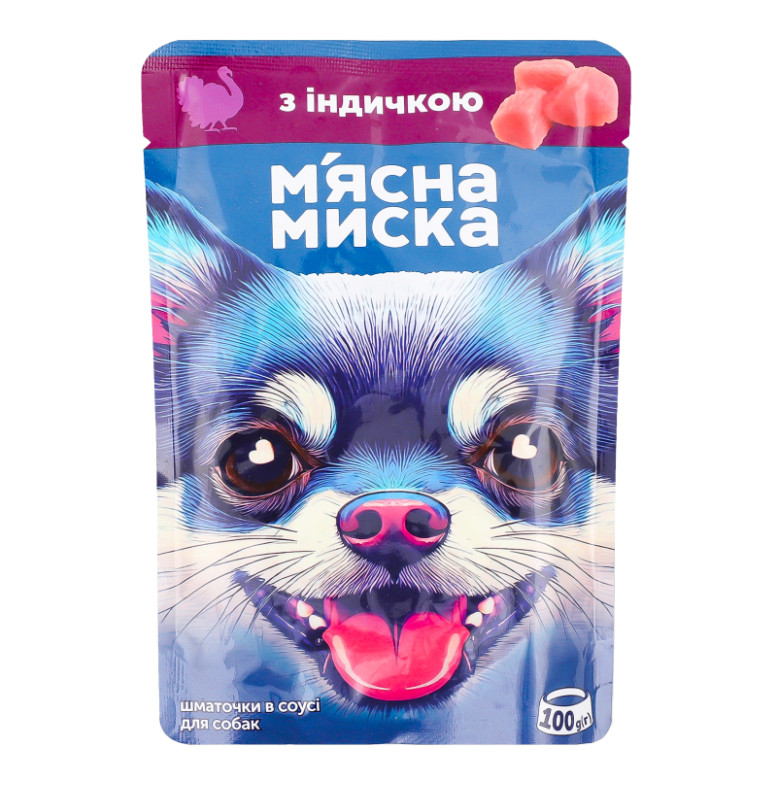 Корм консервований повнораціонний для дорослих котів Шматочки в соусі з індичкою М'ясна Миска д/п 100г