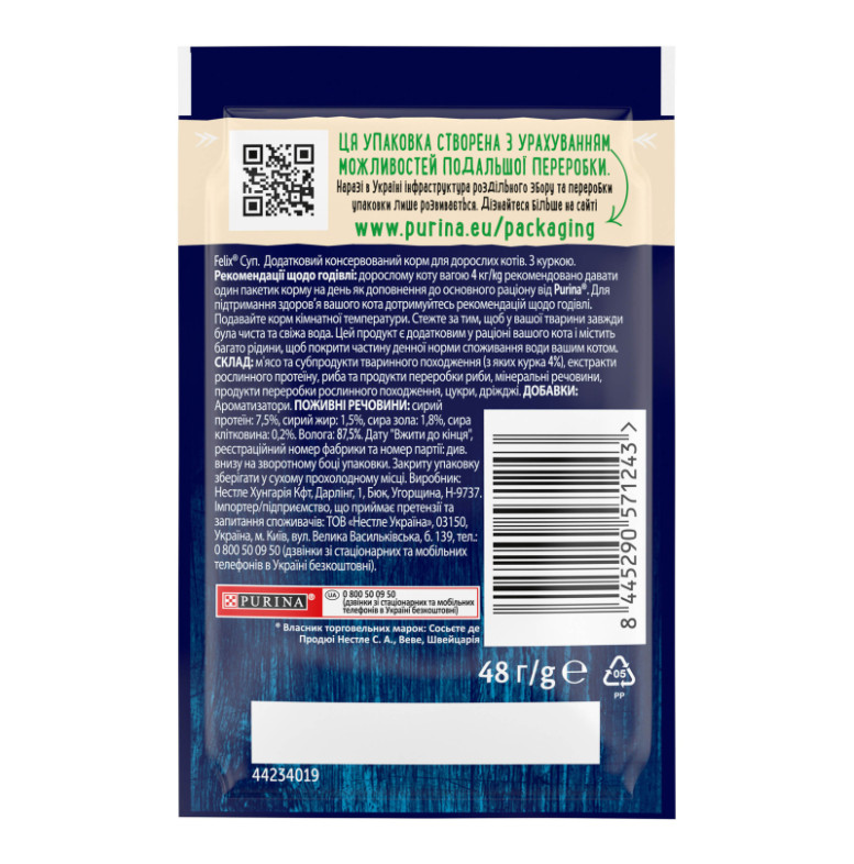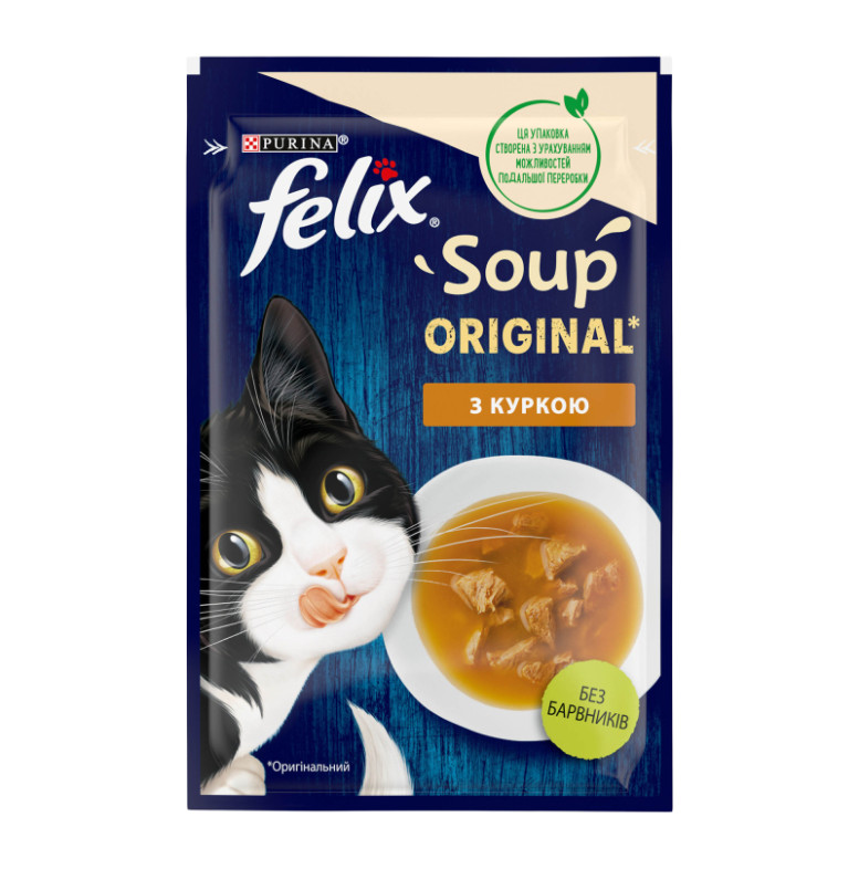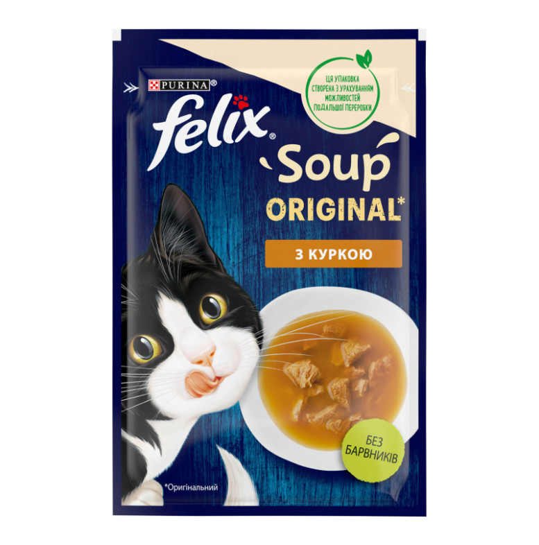 Корм консервований додатковий для дорослих котів з куркою Суп Felix д/п 48г