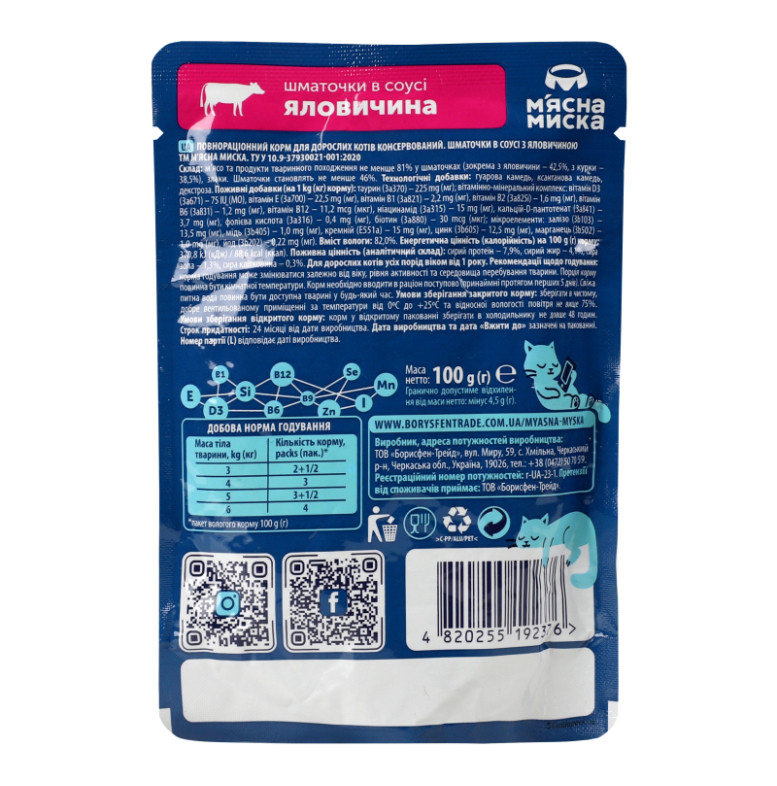 | Вид продукції | ВОЛОГИЙ КОРМ |