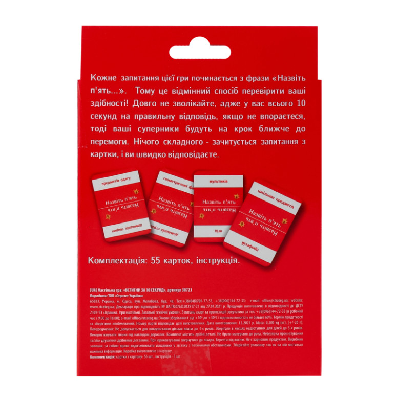 Гра настільна для дітей від 8років №30723 Встигни за 10 секунд Strateg 1шт