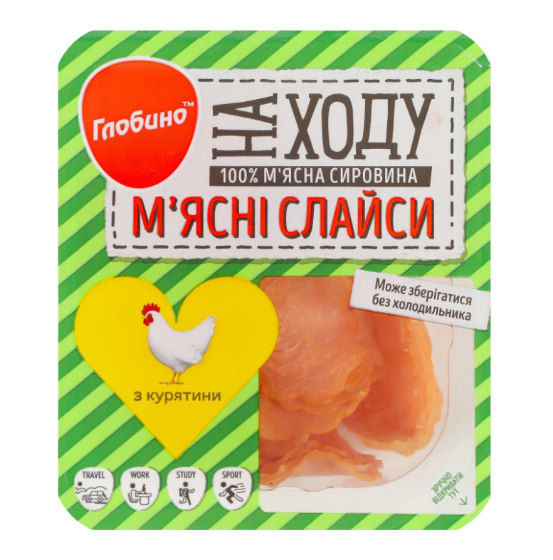 Слайси м'ясні з курятини На ходу Глобино лоток 50г