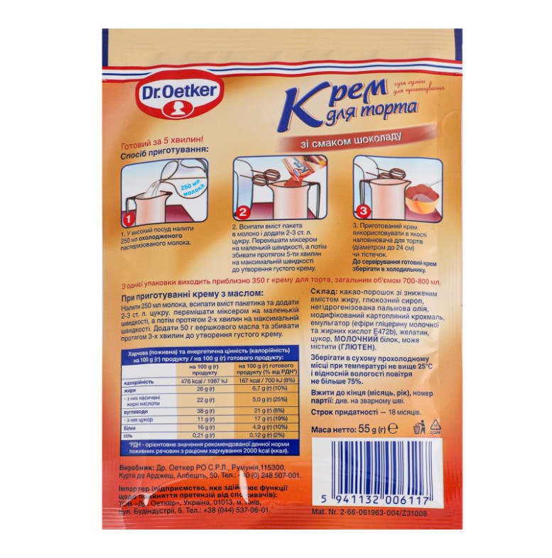 Крем для торта зі смаком шоколаду Dr.Oetker м/у 55г