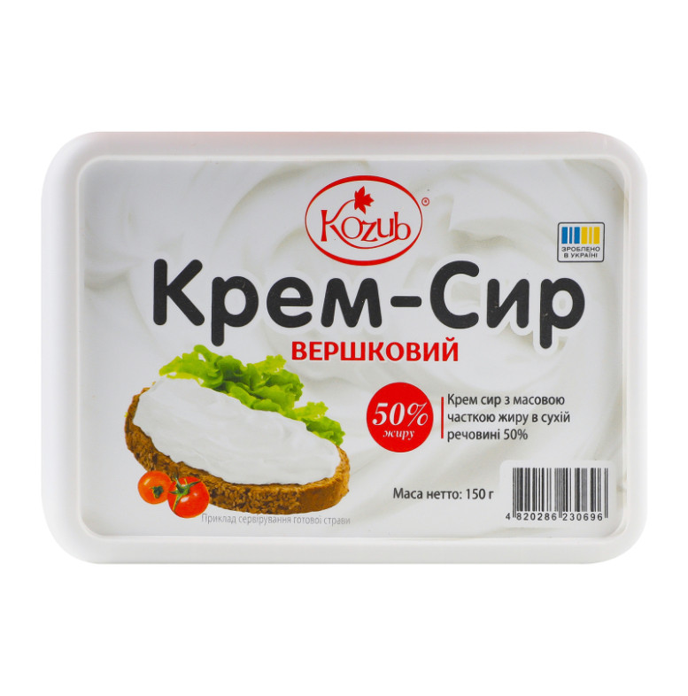 Склад: Сир кисломолочний (62%), масло солодковершкове (22.3%), вода, молоко сухе знежирене (2.5%), цукор, сіль, стабілізатор (Е412, Е410), консервант сорбінова кислота