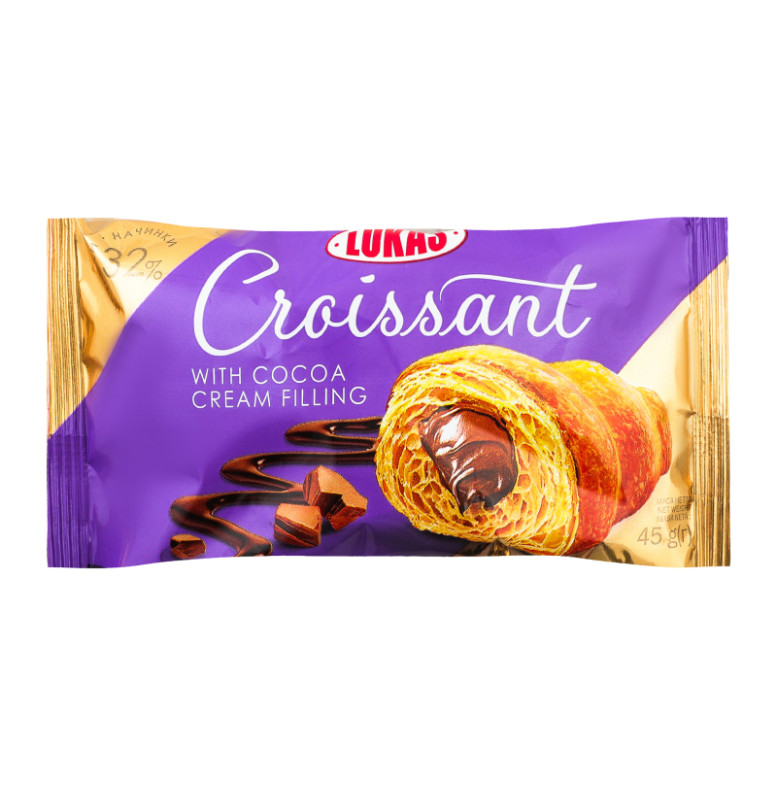 Вироби кондитерські борошняні листкові Круасанчик з начинкою какао крем Lukas м/у 45г