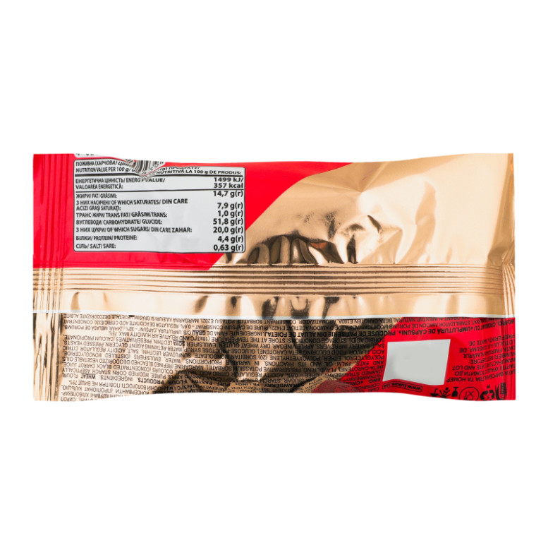| Склад (укр.) | Борошно пшеничне в/с, наповнювач "Полуничний" - 32% (цукор, патока крохмальна, пюре яблучне асептичного консервування, крохмаль кукурудзяний модифікований, пюре полуничне асептичного консервування - 0.6%, регулятор кислотності кислота лимонна, барвники натуральні (концентрований сік чорної моркви, бета-каротин), ароматизатор, консервант сорбат калію), маргарин (олії та жири рослинні рафіновані вибілені дезодоровані: олія пальмова та її фракції, в змінних пропорціях, вода підготовлена, емульгатори (дистильований моногліцерид, ефір полігліцерину, поліоксиетилен (20) сорбітан моноолеат, лецитин соняшниковий), сіль кухонна харчова, консервант сорбат калію, регулятор кислотності кислота лимонна, ароматизатор, барвник харчовий бета-каротин), сироп глюкозно-фруктозний, вологоутримуючий агент гліцерин, дріжджі пресовані, сіль "Екстра", поліпшувачі хлібопекарські, оцет яблучний, глютен пшеничний сухий, емульгатор лецитин соєвий, консерванти (пропіонат кальцію, сорбінова кислота) |
