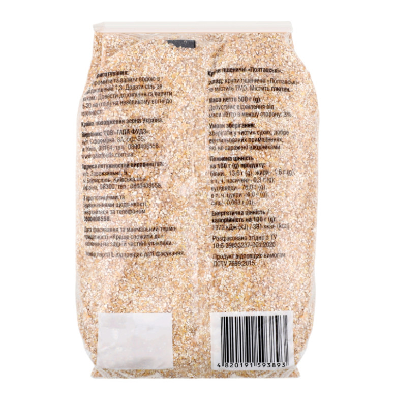| Склад (укр.) | Крупи пшеничні "Полтавські" |