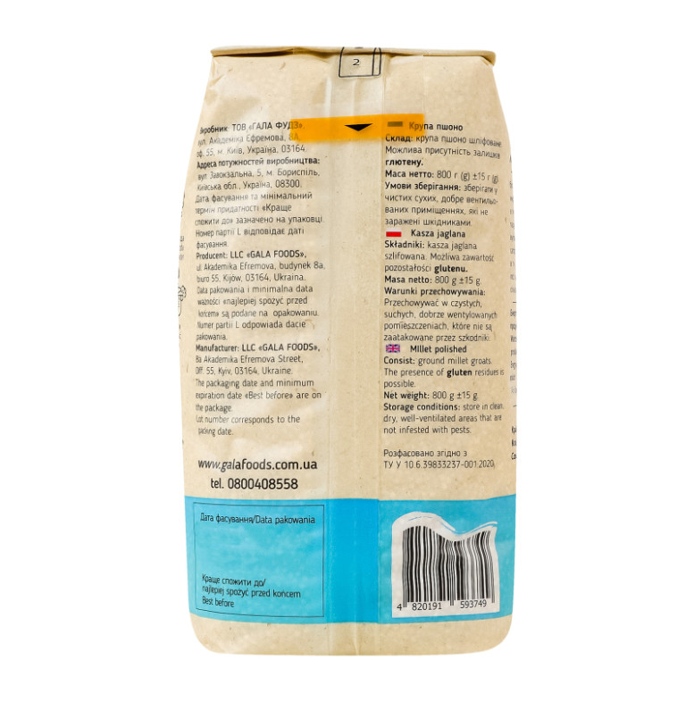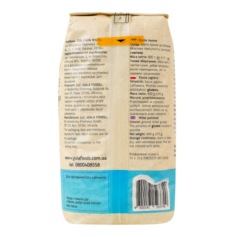 Склад: Крупа пшено шліфоване