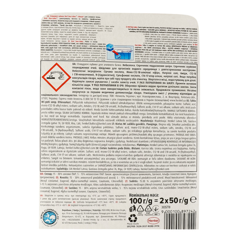 | Вид продукції | КУБИКИ ДЛЯ ЗЛИВНОГО БАЧКА |