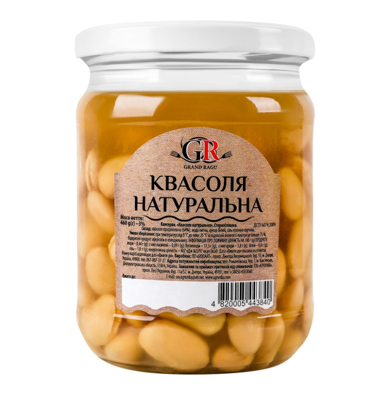 | Склад (укр.) | Квасоля продовольча (64%), вода питна, цукор білий, сіль кухонна харчова |