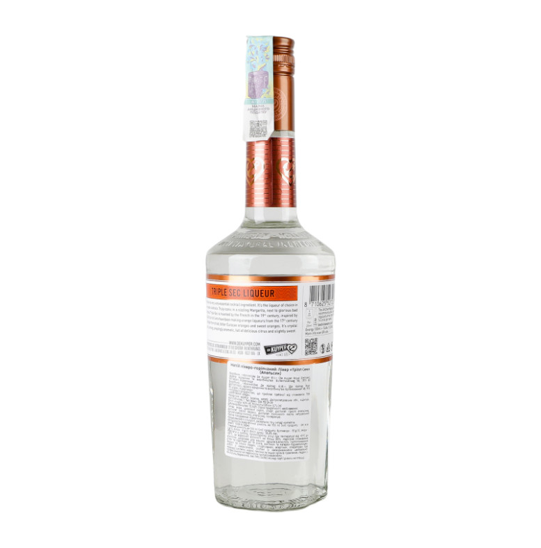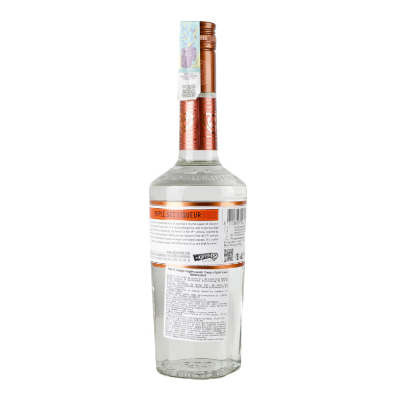 Склад: Вода, цукровий сироп, спирт, дистилят гіркого апельсину, дистилят масла кюрасо, дистилят лимонного масла, натуральний aроматизатор лимону, апельсину, померанцю
