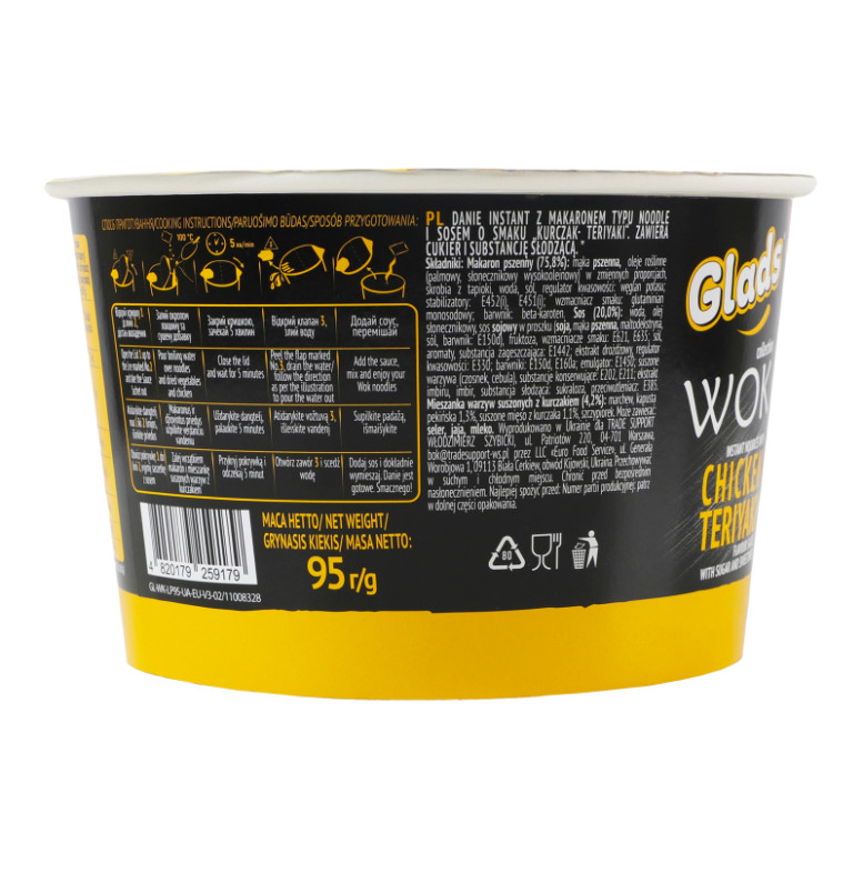 Локшина швидкого приготування з соусом Курка теріякі Wok Glads ст 95г