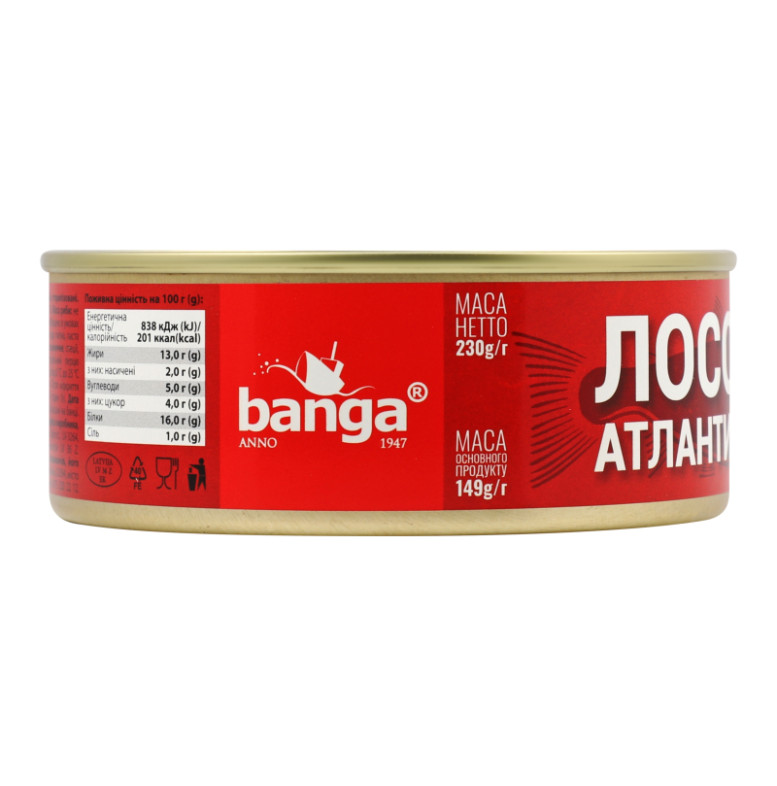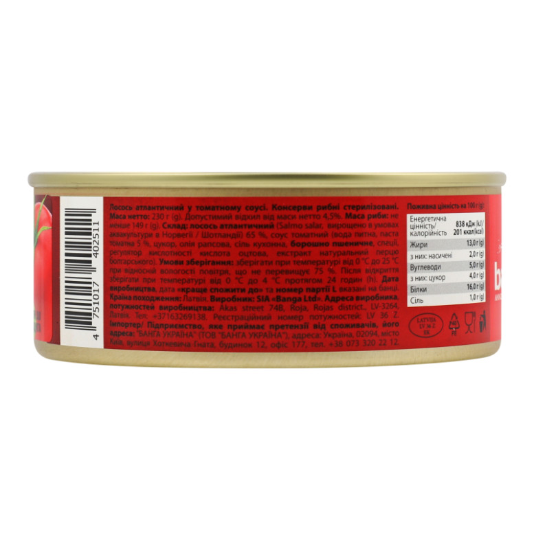 Лосось атлантичний в томатному соусі 230г ж/б з ключем Банга