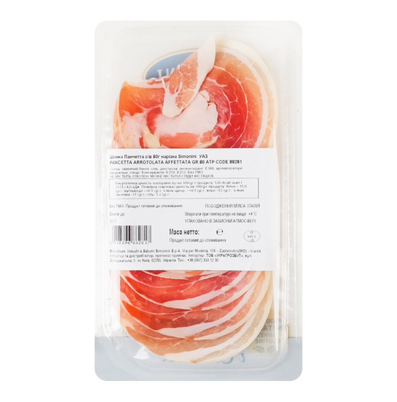 Шинка нарізка Панчетта I Classici Simonini с/в лоток 80г