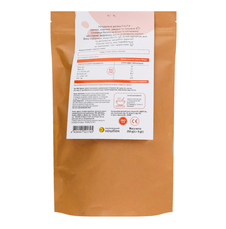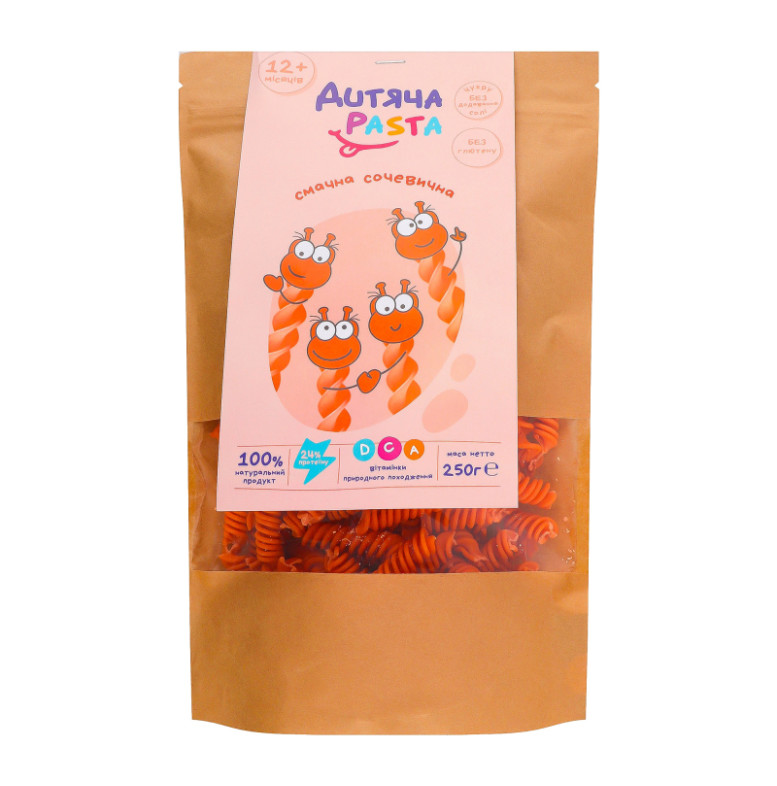 Вироби макаронні для дітей від 12міс з червоної сочевиці Смачна сочевична Дитяча Pasta д/п 250г