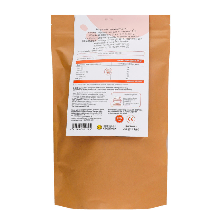 Склад: Борошно з твердих сортів пшениці (дурум), сухий яєчний жовток, морквяний порошок, вода питна