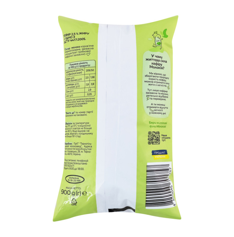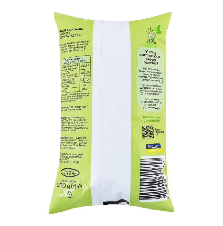 | Склад (укр.) | Молоко коров'яче нормалізоване, закваска (концентрат грибкової кефірної закваски) |