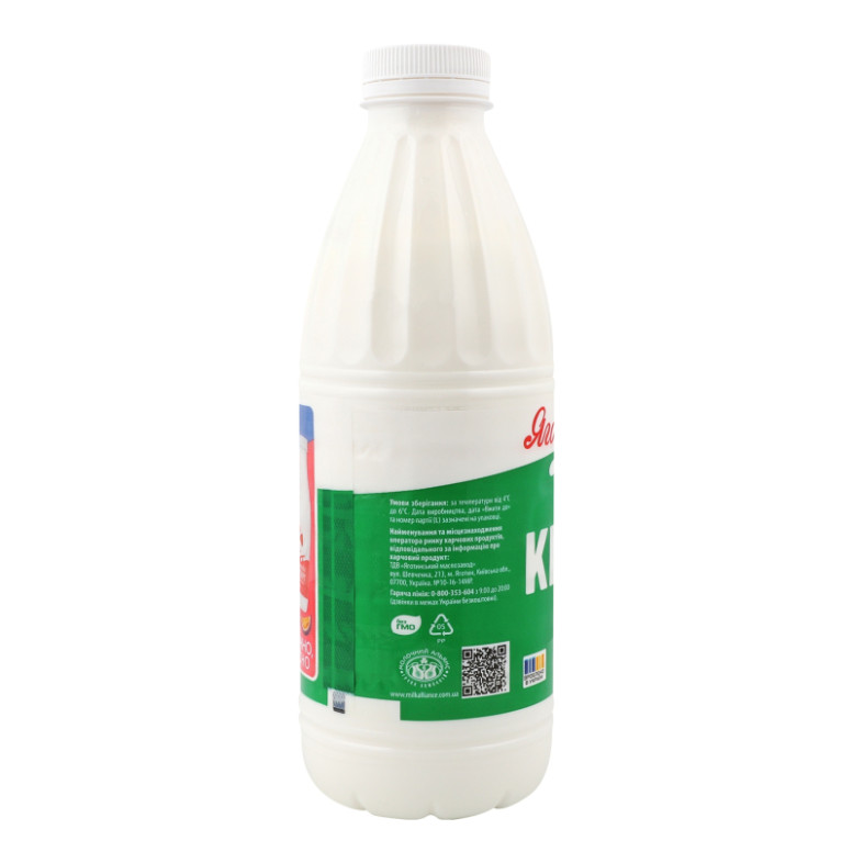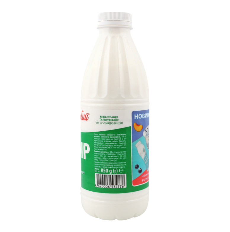 Склад: Молоко коров'яче незбиране, молоко коров'яче знежирене, чисті культури молочнокислих бактерій з використанням кефірних грибків