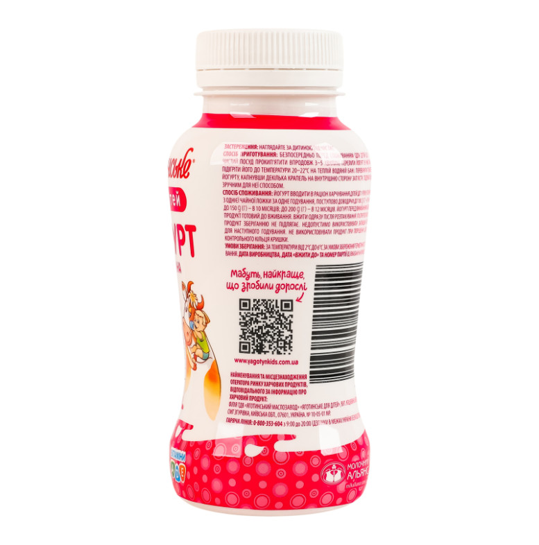 | Застереження/міри безпеки (ua) | Важливо: безумовна перевага належить грудному вигодовуванню. Перед початком годування дитини до 1 року необхідно проконсультуватись з лікарем-педіатром. Наглядайте за дитиною під час їжі. Після розпакування продукт зберіганню не підлягає. Недопустимо використовувати залишки йогурту для наступного годування. Не використовувати продукт при порушенні цілісності контрольного кільця кришки |