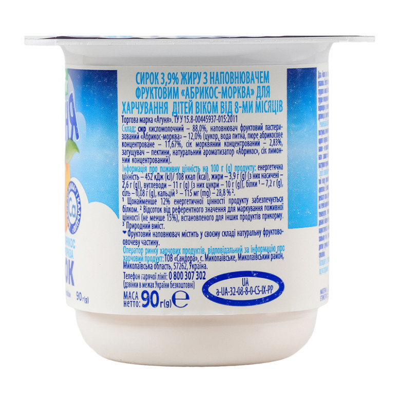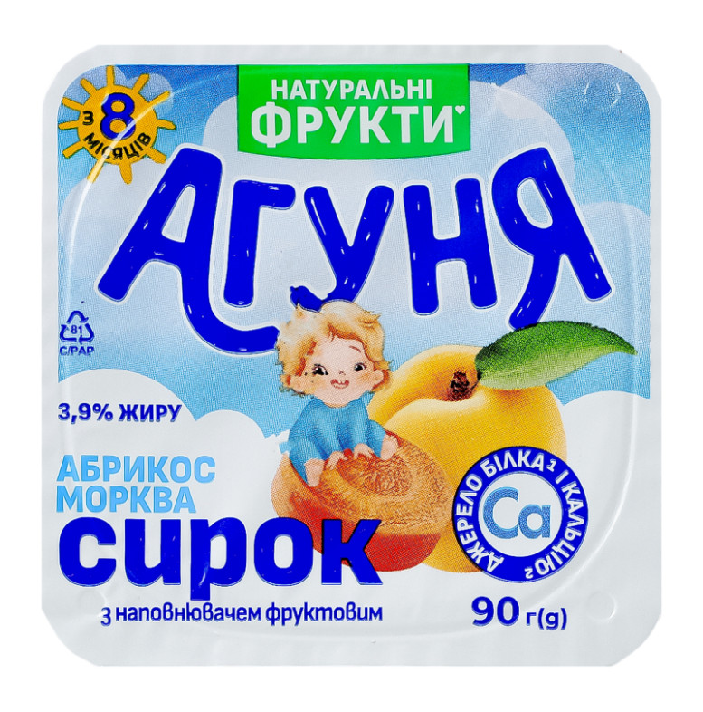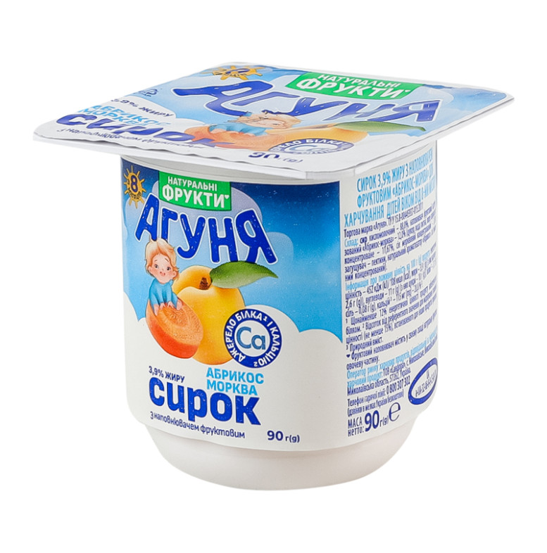 Сирок 3.9% для дітей від 8міс з наповнювачем фруктовим Абрикос-морква Агуня ст 90г