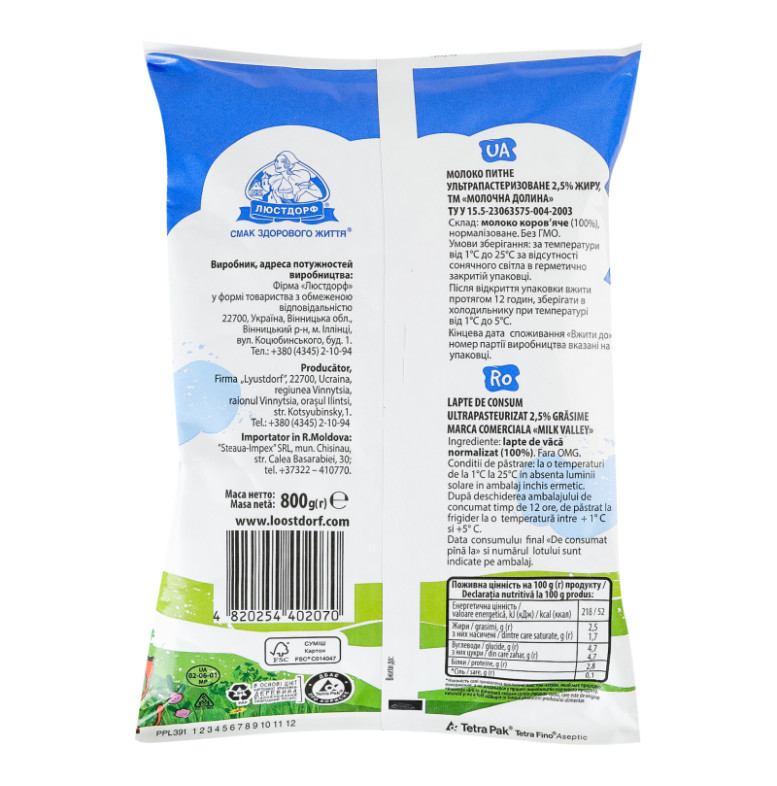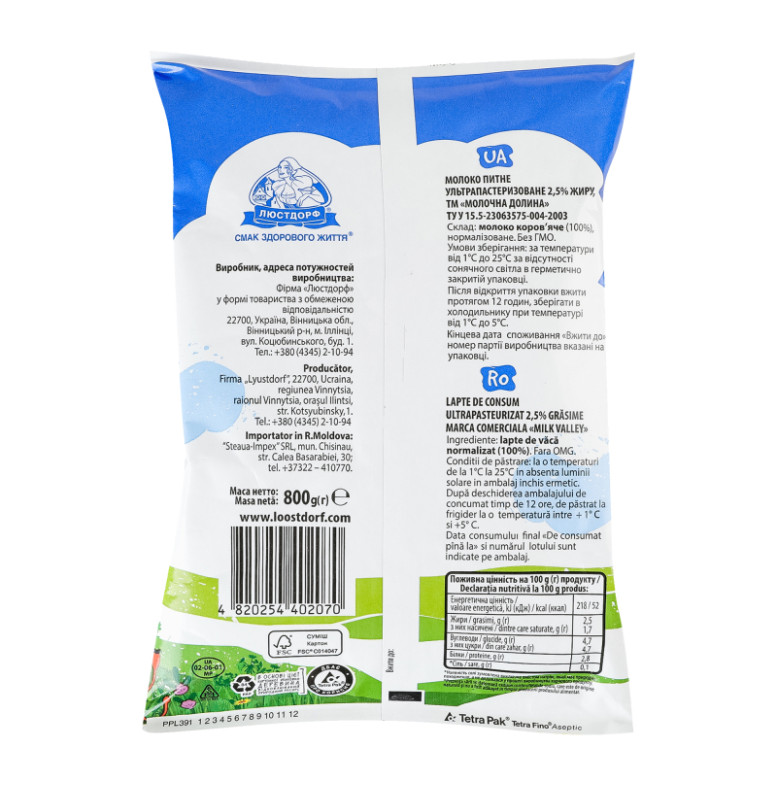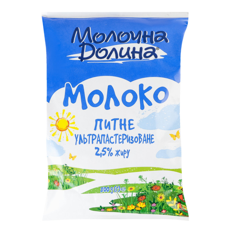 Молоко 2.5% ультрапастеризоване Молочна Долина т/п 800г