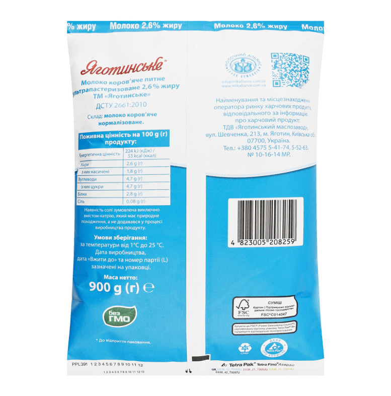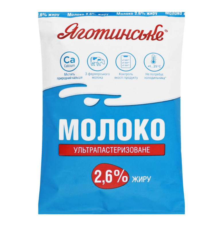 Молоко 2,6% ультрапастеризоване Яготинське т/п 900г