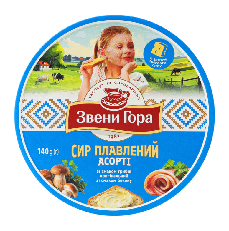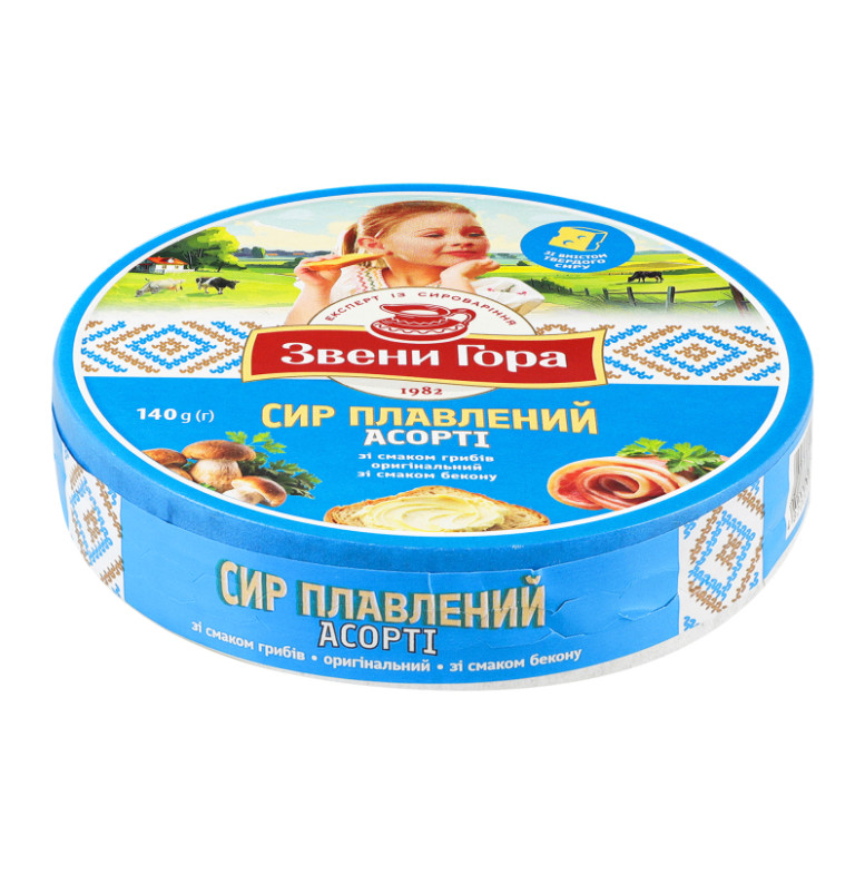 Сир плавлений 45% порційний Асорті Звени Гора к/у 8х17.5г