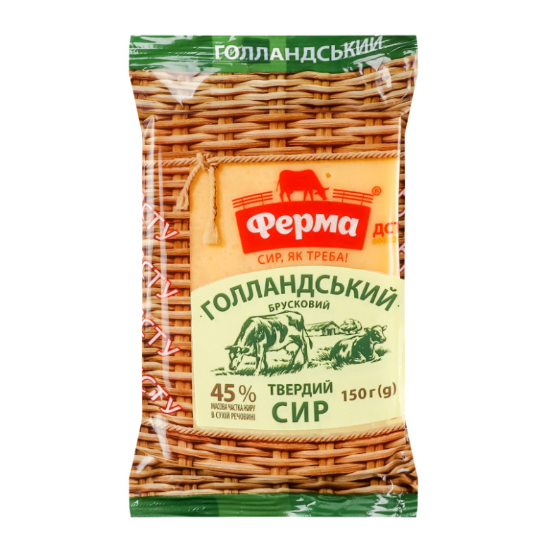 Сир 45% твердий Голландський брусковий Ферма м/у 150г
