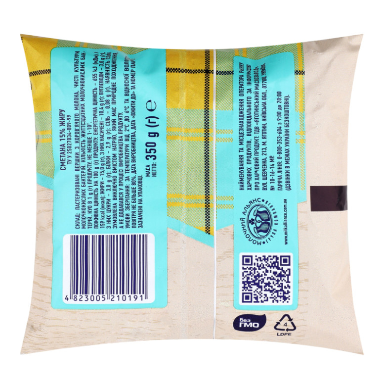Сметана 15% Славія м/у 350г