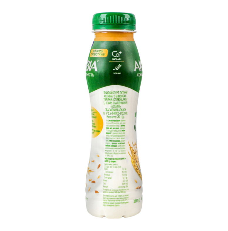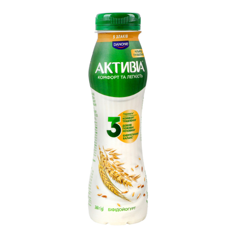 Біфідойогурт 1.2% питний з біфідобактеріями Actiregularis 5 злаків Активіа п/пл 260г