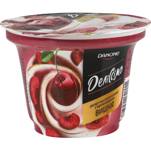 Склад: Молоко нормалізоване 77%, наповнювач "Вишня»" 12% (вишня 35%, цукор, вода питна, крохмаль, цитрат кальцію, ароматизатори черешні, ванілі, ароматизатори натуральні "Вершкове масло", "Ваніль", сік чорної моркви концентрований), цукор, сироватка молочна суха, крохмаль, молоко сухе знежирене, закваски бактеріальні