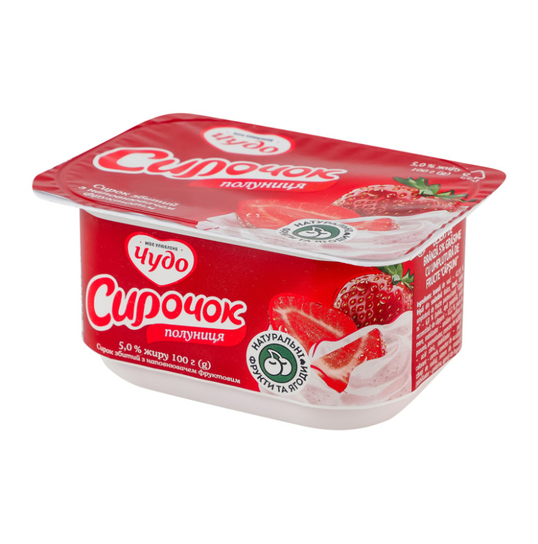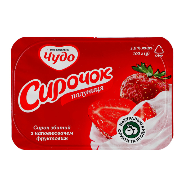 Сирок 5% збитий з наповнювачем фруктовим Полуниця Чудо ст 100г