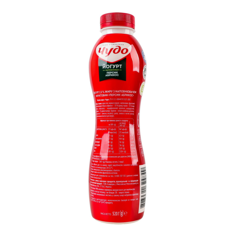 Йогурт 2.5% з наповнювачем фруктовим Персик-абрикос Чудо п/пл 520г