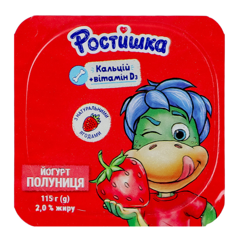 Йогурт 2% з наповнювачем Полуниця Ростишка ст 115г