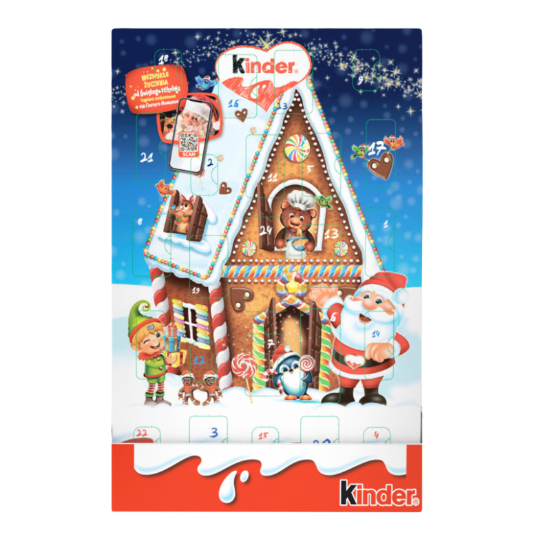 | Склад (укр.) | Figure фігурний молочний шоколад з молочним шаром (55%) всередині: молочний шоколад 45% (цукор, молоко сухе незбиране, какао-масло, какао терте, емульгатор: лецитин (соєвий), ванілін, мінімальний вміст какао-продуктів 32%), молоко сухе знежирене (17.5%), цукор, жири рослинні (пальма, ши), молочний жир, емульгатор: лецитин (соєвий), ванілін. Chocolate Mini молочний шоколад з молочною начинкою (60%): молочний шоколад 40% (цукор, молоко сухе незбиране, какао-масло, какао терте, емульгатор: лецитин (соєвий), ванілін, мінімальний вміст какао-продуктів 32%), цукор, молоко сухе знежирене (18%), жир рослинний (пальма), молочний жир, емульгатор: лецитин (соєвий), ванілін. Bueno Mini вафлі із молочно-горіховою начинкою (54%), покриті молочним шоколадом: молочний шоколад 31% (цукор, какао-масло, какао терте, молоко сухе знежирене, молочний жир, емульгатор: лецитин (соєвий), ванілін, мінімальний вміст какао-продуктів 42%), цукор, жир рослинний (пальма), борошно пшеничне, лісові горіхи (10.8%), молоко сухе знежирене (8.5%), молоко сухе незбиране (5.5%), шоколад 2% (цукор, какао терте, какао-масло, емульгатор: лецитин (соєвий), ванілін, мінімальний вміст какао-продуктів 50%), знежирений какао-порошок, емульгатор: лецитин (соєвий), розпушувач (гідрокарбонат натрію), сіль, ванілін. Mini Eggs Hazelnut цукерки з молочного шоколаду з молочною начинкою (49.5%) та лісовими горіхами: молочний шоколад 45% (цукор, молоко сухе незбиране, какао-масло, какао терте, емульгатор: лецитин (соєвий), ванілін, мінімальний вміст какао-продуктів 32%), цукор, молоко сухе знежирене (14.5%), жир рослинний (пальма), лісові горіхи (6.5%), молочний жир, емульгатор: лецитин (соєвий), ванілін. Schoko-bons цукерки з молочного шоколаду з молочною начинкою (42.5%) та горіхами: молочний шоколад 50% (цукор, молоко сухе незбиране, какао-масло, какао терте, емульгатор: лецитин (соєвий), ванілін, мінімальний вміст какао-продуктів 32.5%), цукор, молоко сухе знежирене (12.5%), жир рослинний (пальма), лісові горіхи (5.8%), молочний жир, шоколад (цукор, какао терте, какао-масло, емульгатор: лецитин (соєвий), ванілін, мінімальний вміст какао-продуктів 50%), глазуруючий агент (гуміарабік), сироп глюкози, емульгатор: лецитин (соєвий), ванілін |
