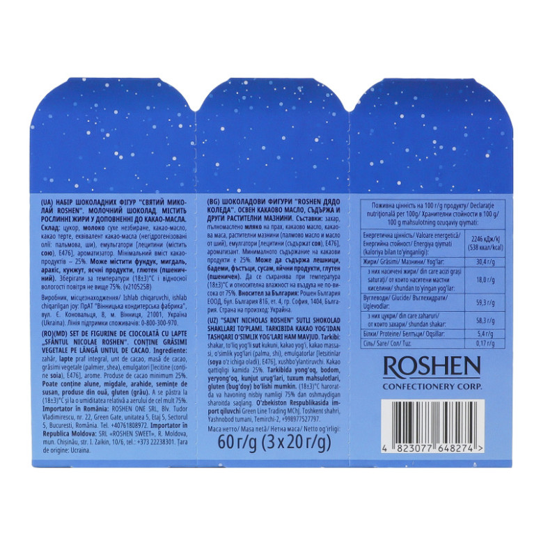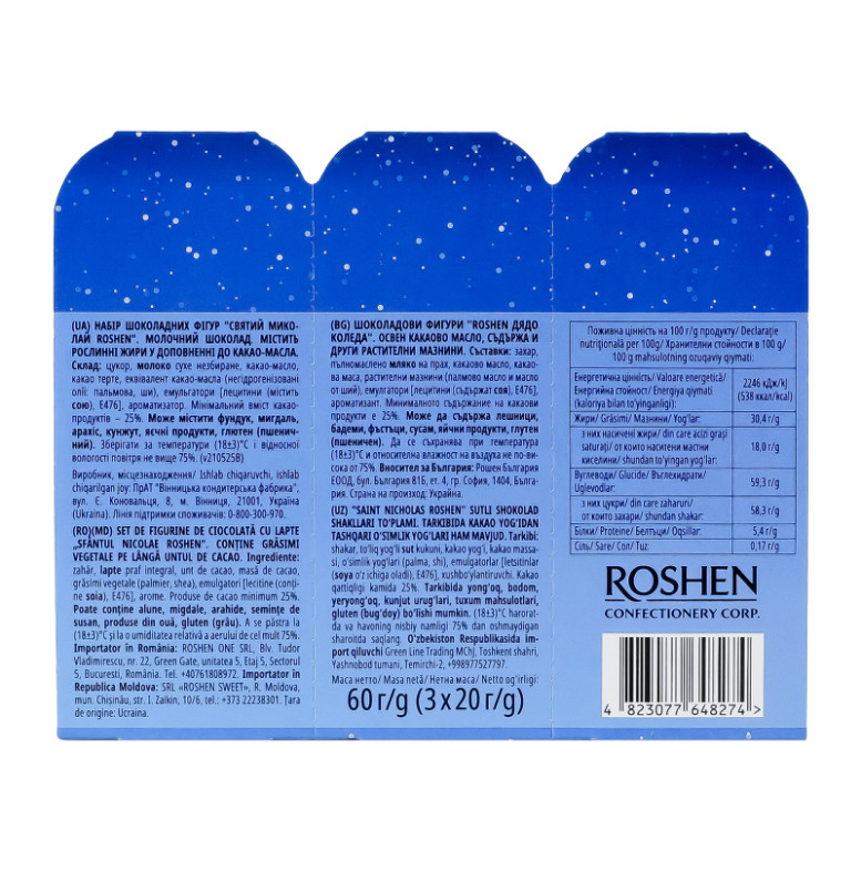Фігури з молочного шоколаду Святий Миколай Roshen к/у 3х20г
