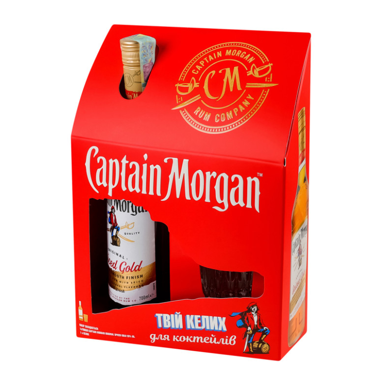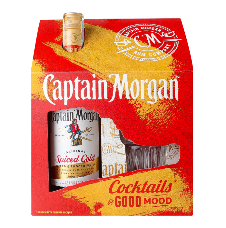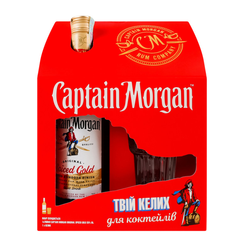 Набір Напій алкогольний 0.7л 35% на основі карибського рому Spiced Gold + склянка Captain Morgan к/у 2шт