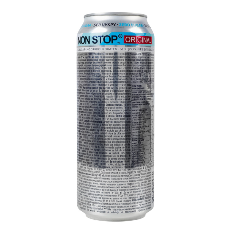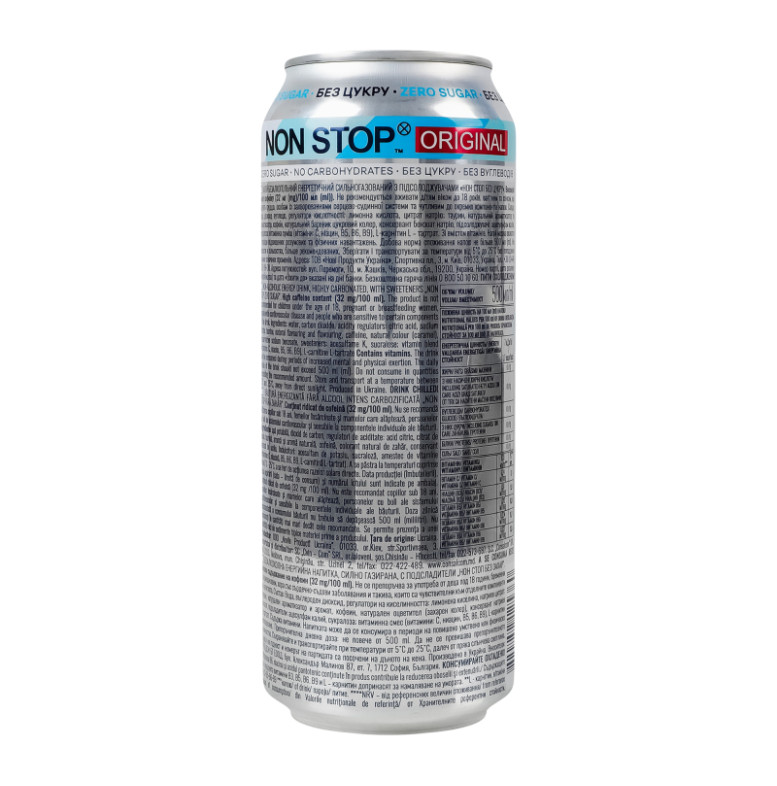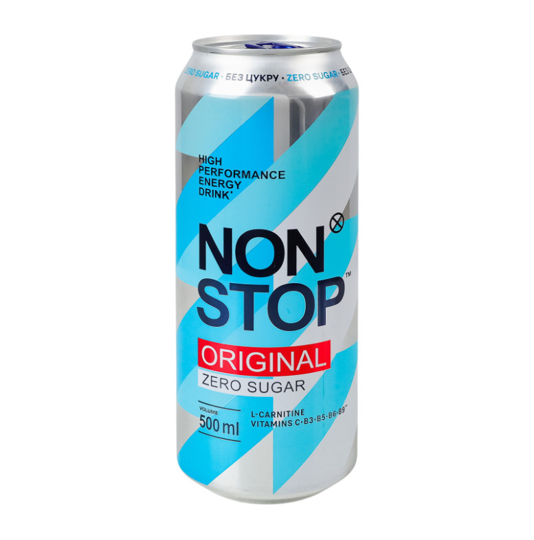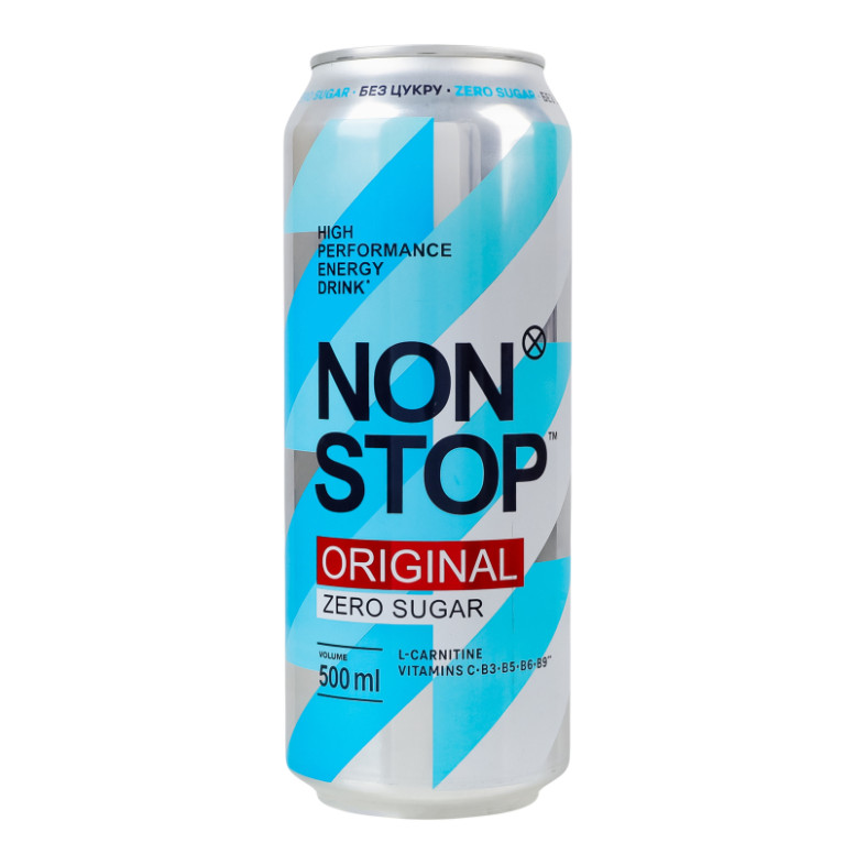 Напій енергетичний безалкогольний сильногазований без цукру з підсолоджувачами Original Non Stop з/б 500мл