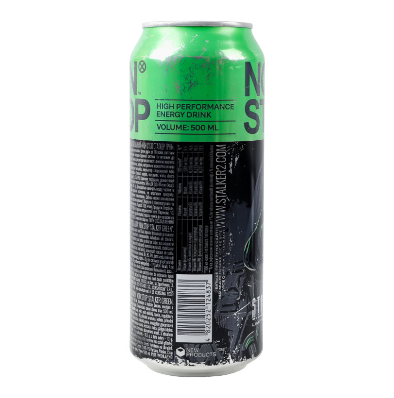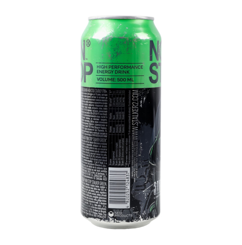 Напій енергетичний безалкогольний сильногазований Stalker Green Non Stop з/б 500мл