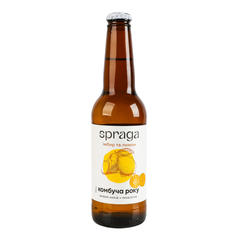 Напій безалкогольний ферментований непастеризований Імбир та лимон Комбуча Spraga с/пл 330мл