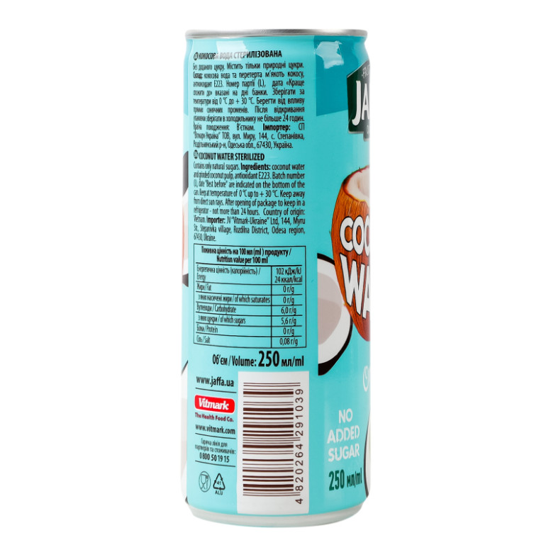 Вода кокосова стерилізована Original Jaffa з/б 250мл