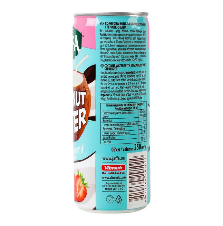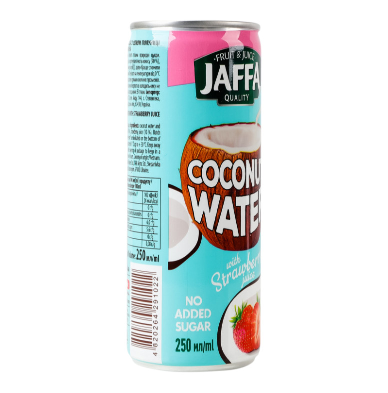 Вода кокосова стерилізована з соком полуниці Jaffa з/б 250мл
