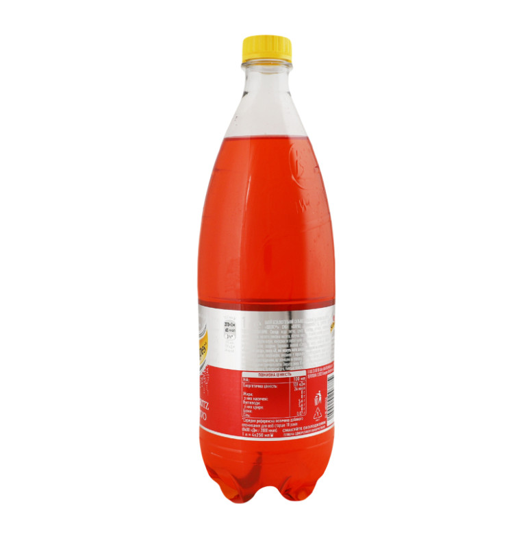 Склад: Вода питна, цукор, діоксид вуглецю, натуральні ароматизатори, кислоти: лимонна кислота, яблучна кислота та винна кислота, регулятор кислотності: цитрати натрію, консерванти: сорбат калію та бензоат натрію, підсолоджувачі: ацесульфам калію, сахарини, барвники: жовтий "Сонячний захід", понсо 4R