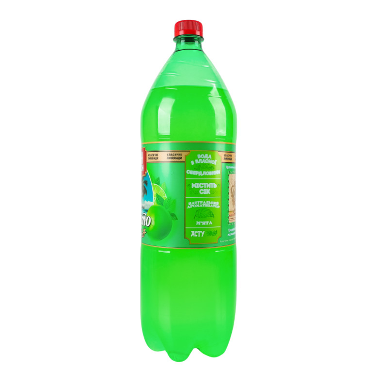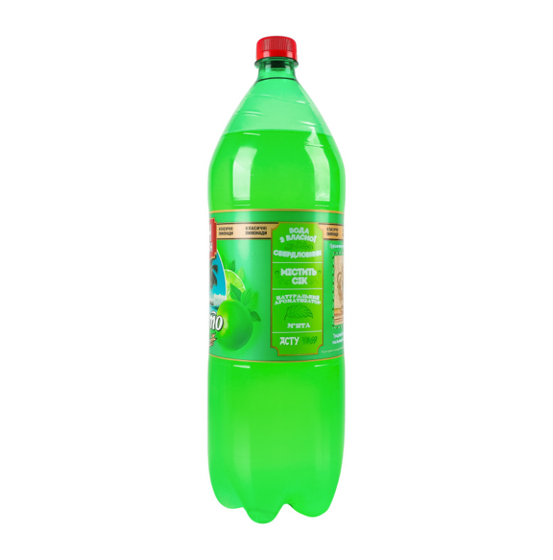 Склад: Вода, цукор, основа Мультифрут (соки концентровані (1%): яблука, винограду, лимона, консервант бензоат натрію), регулятор кислотності лимонна кислота, ароматична емульсія Ліметта (ароматичний екстракт, ароматичні речовини, емульгатори: гліцеринові ефіри деревної смоли, ізо-бутилатецетат сахарози, барвник бета-каротин), натуральний ароматизатор М'ята, антиоксидант аскорбінова кислота, консервант бензоат натрію, підсолоджувачі: ацесульфам К та сукралоза