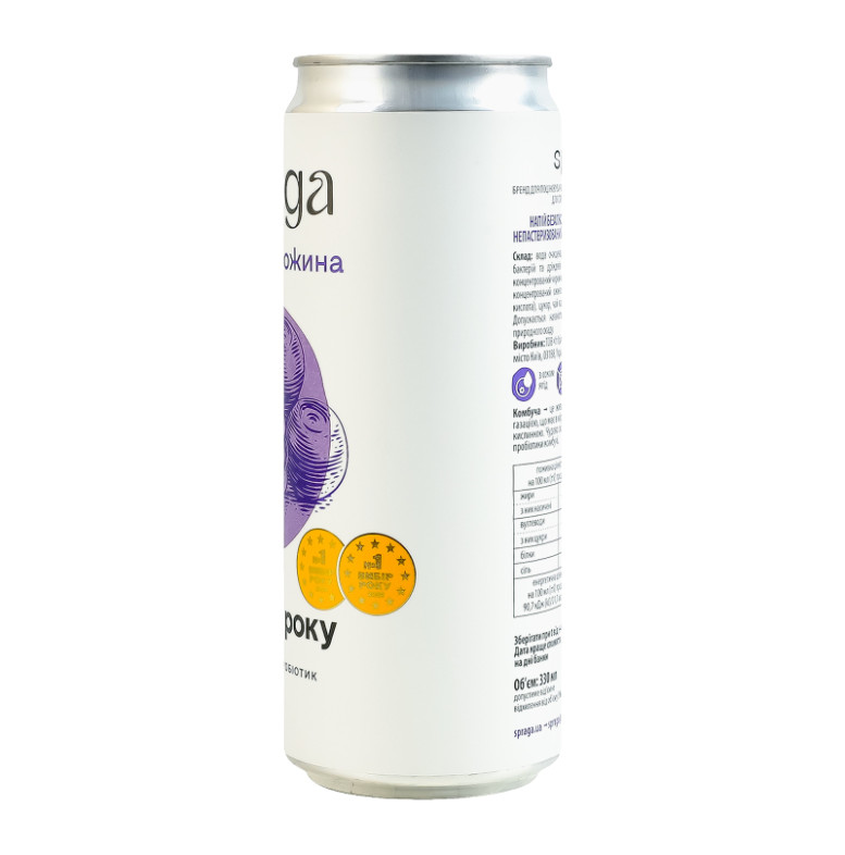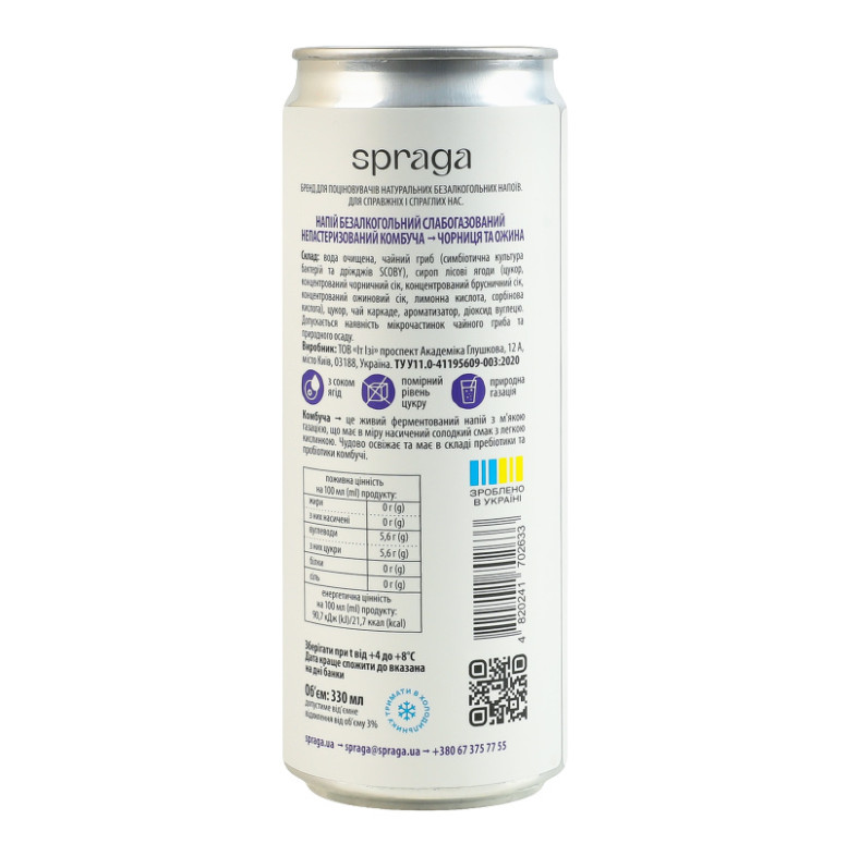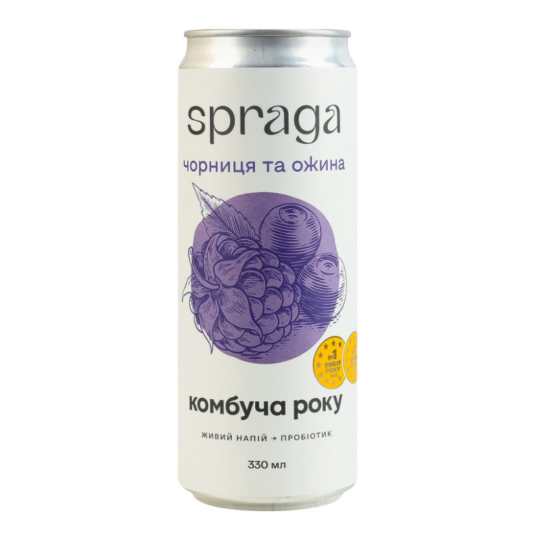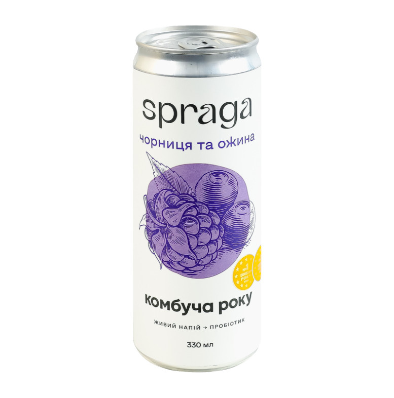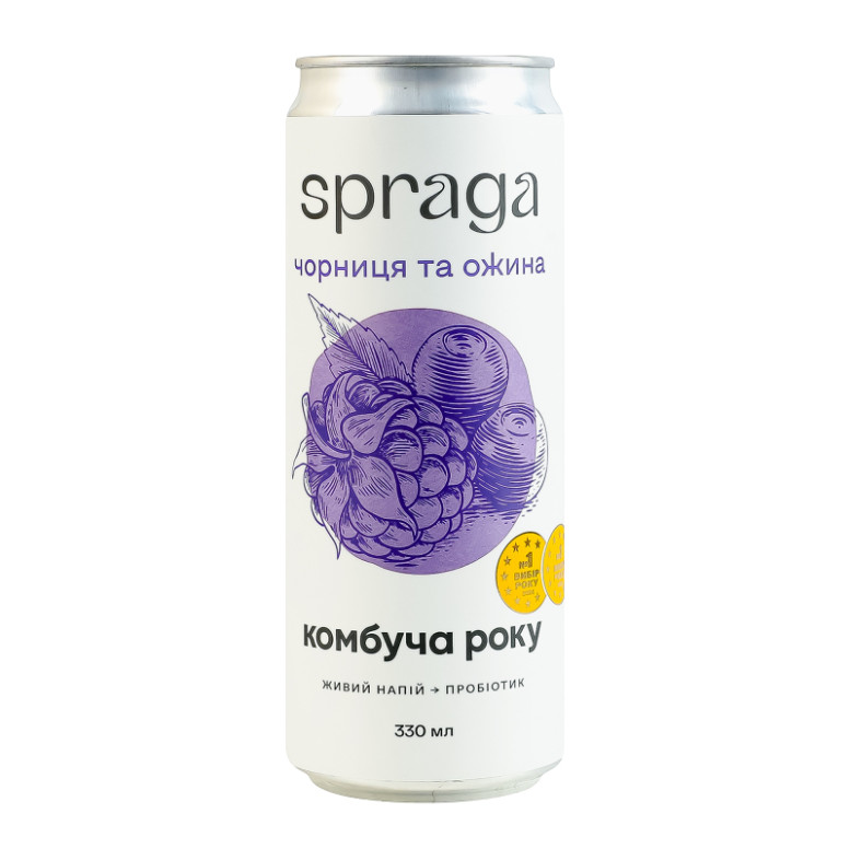 Напій безалкогольний слабогазований непастеризований Чорниця та ожина Комбуча Spraga з/б 330мл