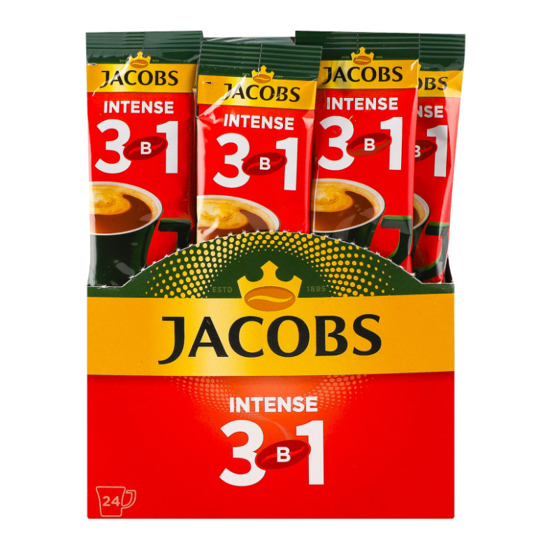 Напій кавовий розчинний з цукром та підсолоджувачами 3в1 Intense Jacobs м/у 12г