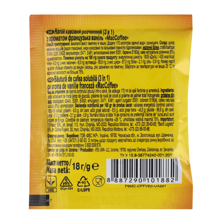 Напій кавовий розчинний з ароматом французька ваніль 3в1 MacCoffee м/у 18г