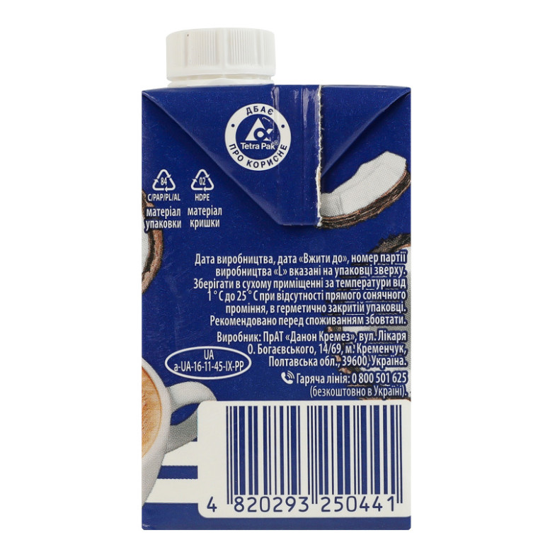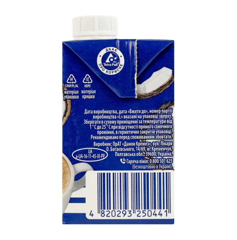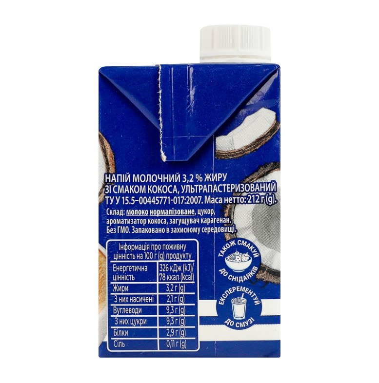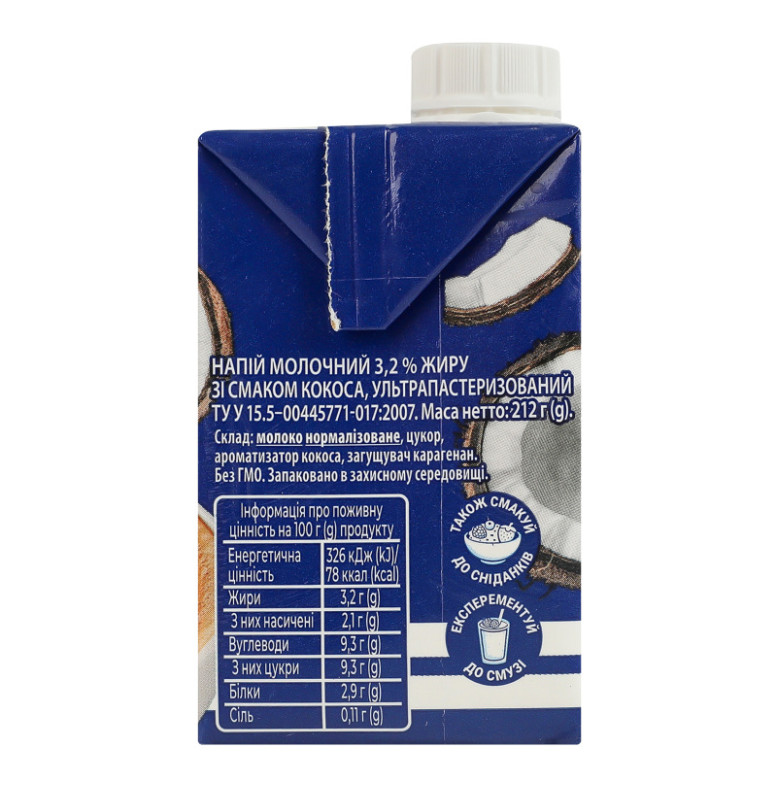 Склад: Молоко нормалізоване, цукор, ароматизатор кокоса, загущувач каррагінан