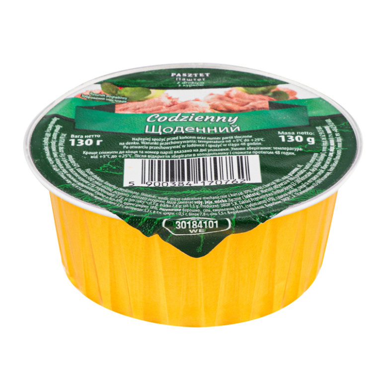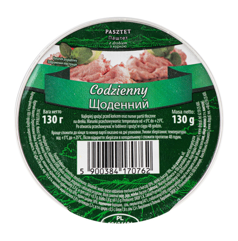 | Склад (укр.) | Вода, механічно відокремлене куряче м'ясо 30%, курячі шкірки 18%, пшеничне борошно, сіль, емульгатор Е471, стабілізатор Е450, сушена цибуля, спеції та екстракти спецій |