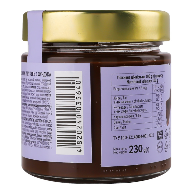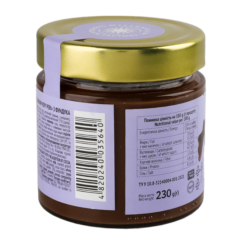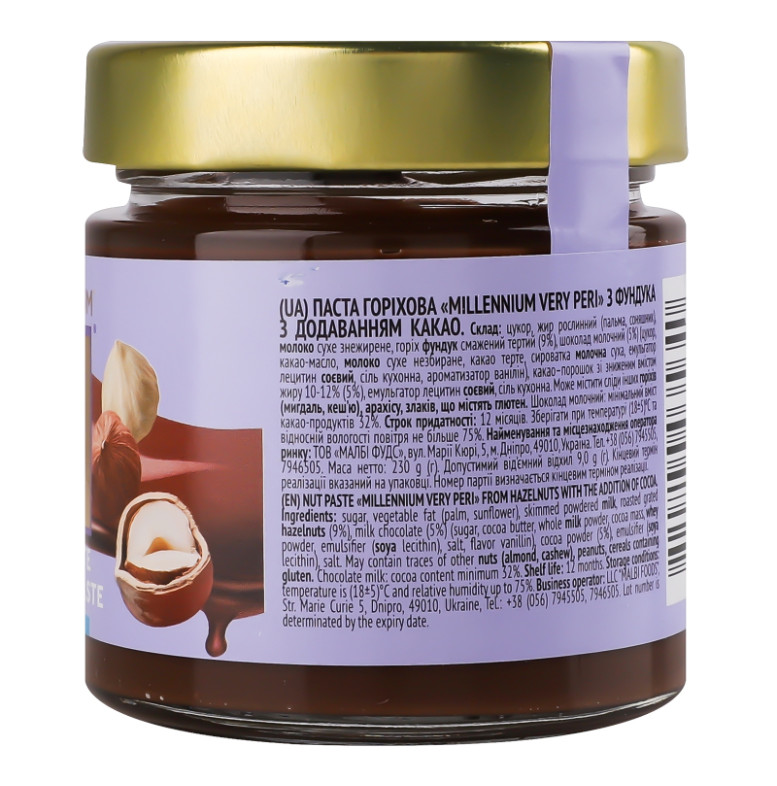 Паста горіхова з фундука з додаванням какао Very Peri Millennium с/б 230г