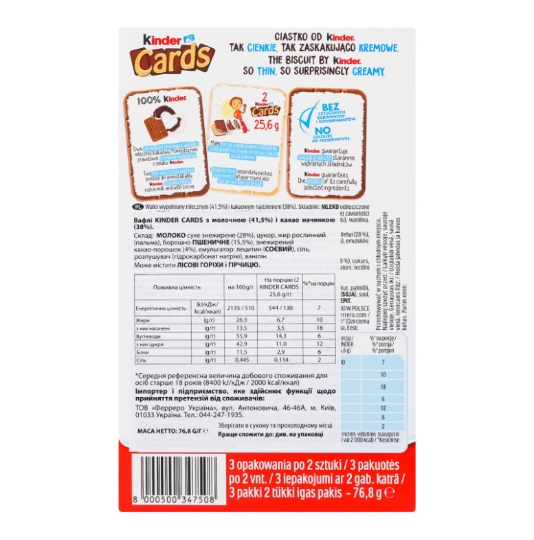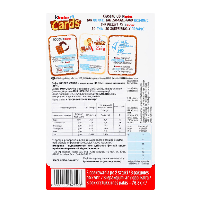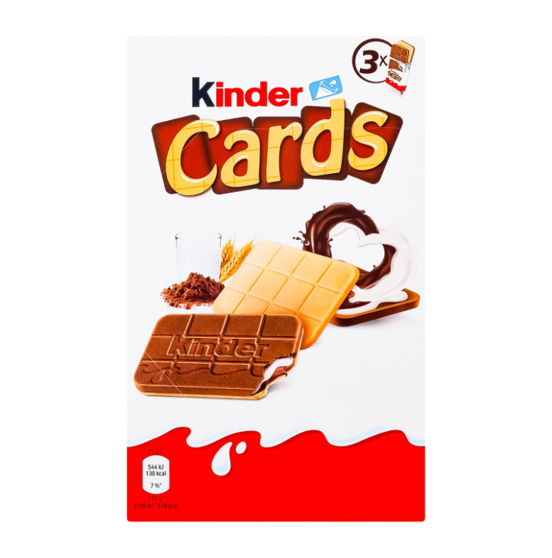 Вафлі з молочною і какао начинкою Cards Kinder к/у 3х25.6г